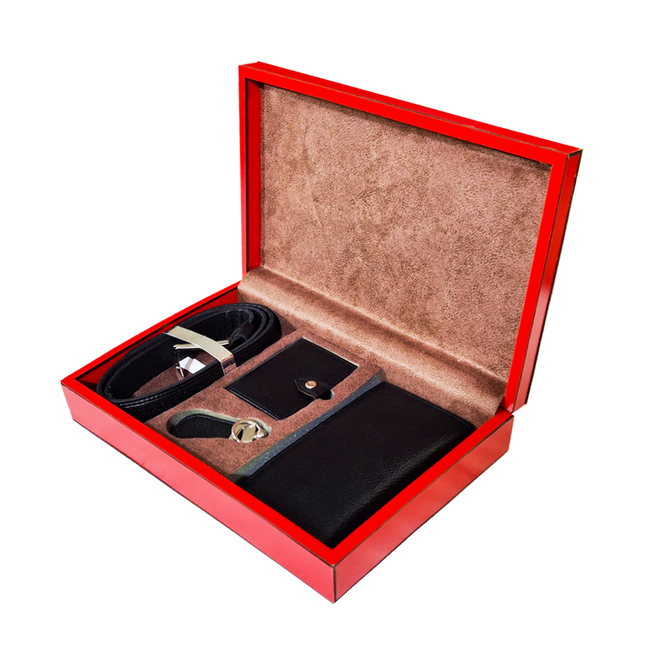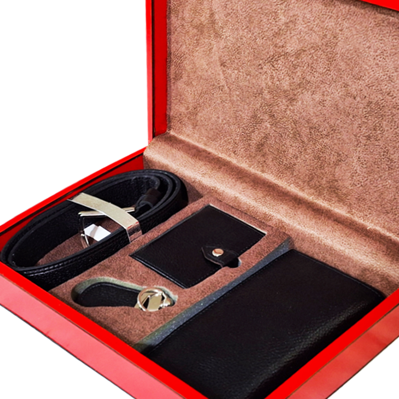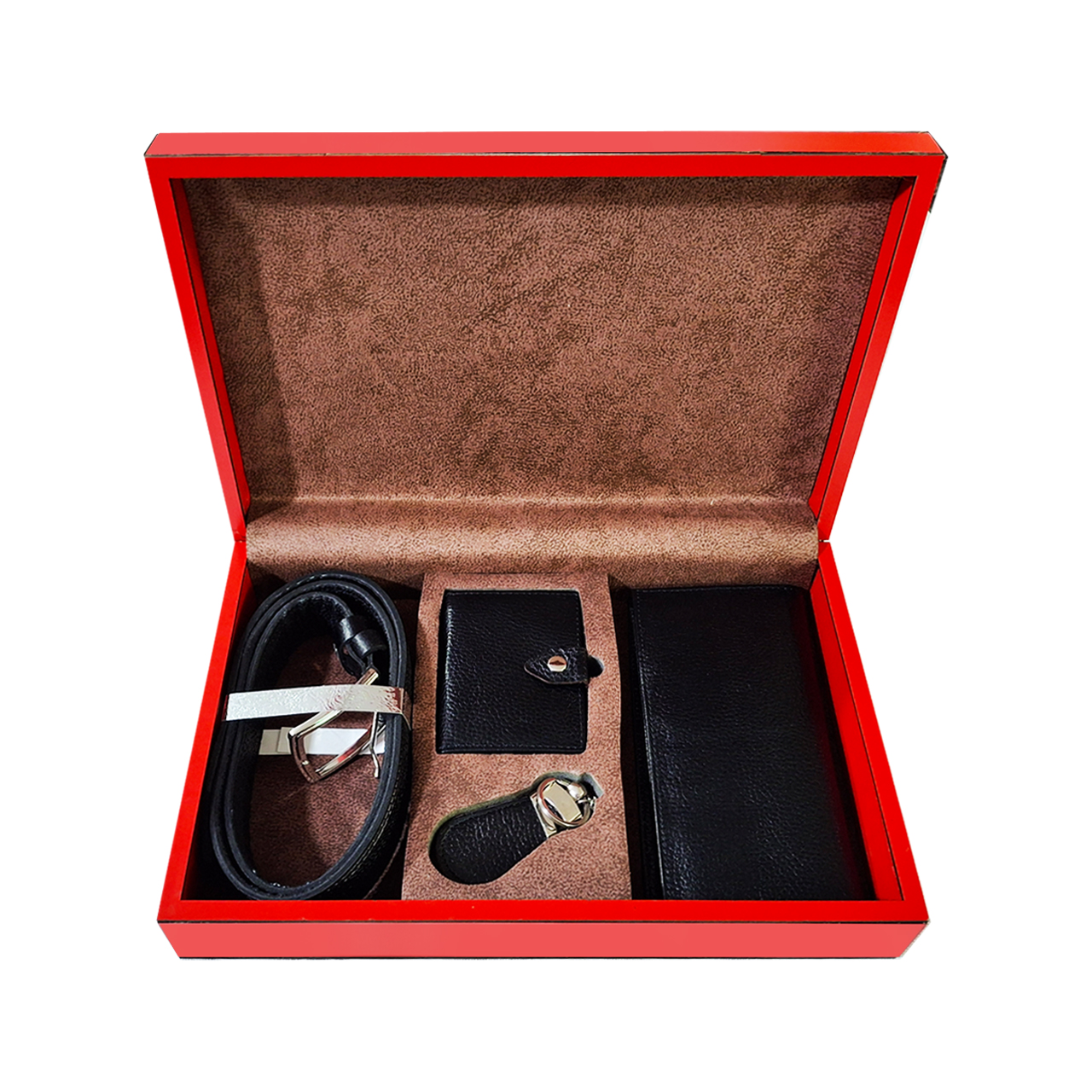 ست چرم مردانه ۴ تکه ما، از چرم طبیعی گاوی با کیفیت عالی ساخته شده است و شامل یک جعبه چوبی زیبا و یک بگ مخملی میباشد. این ست منحصر به فرد، بهترین انتخاب برای آقایانی است که به دنبال زیبایی و کارایی در کنار هم هستند.