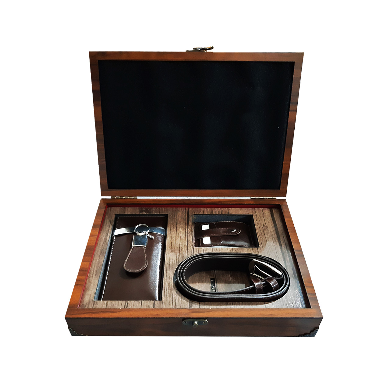 ست هدیه مردانه جعبه چوبی اعلای صندوقی قفل‌دار کد ۷۸۰
