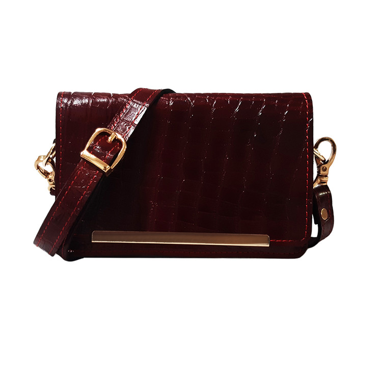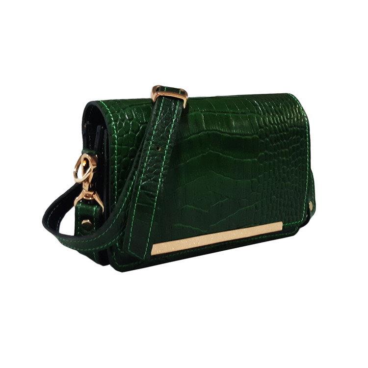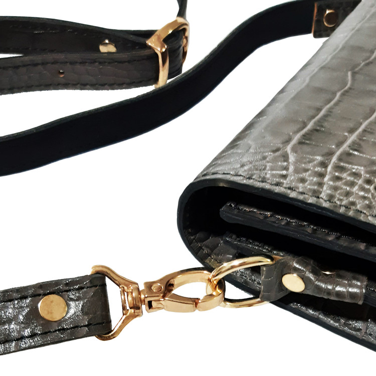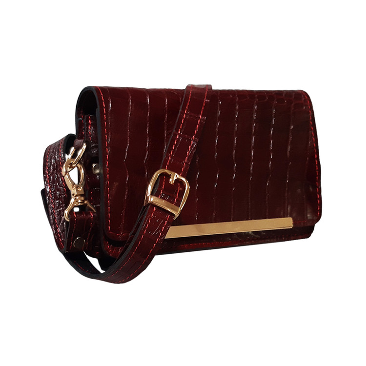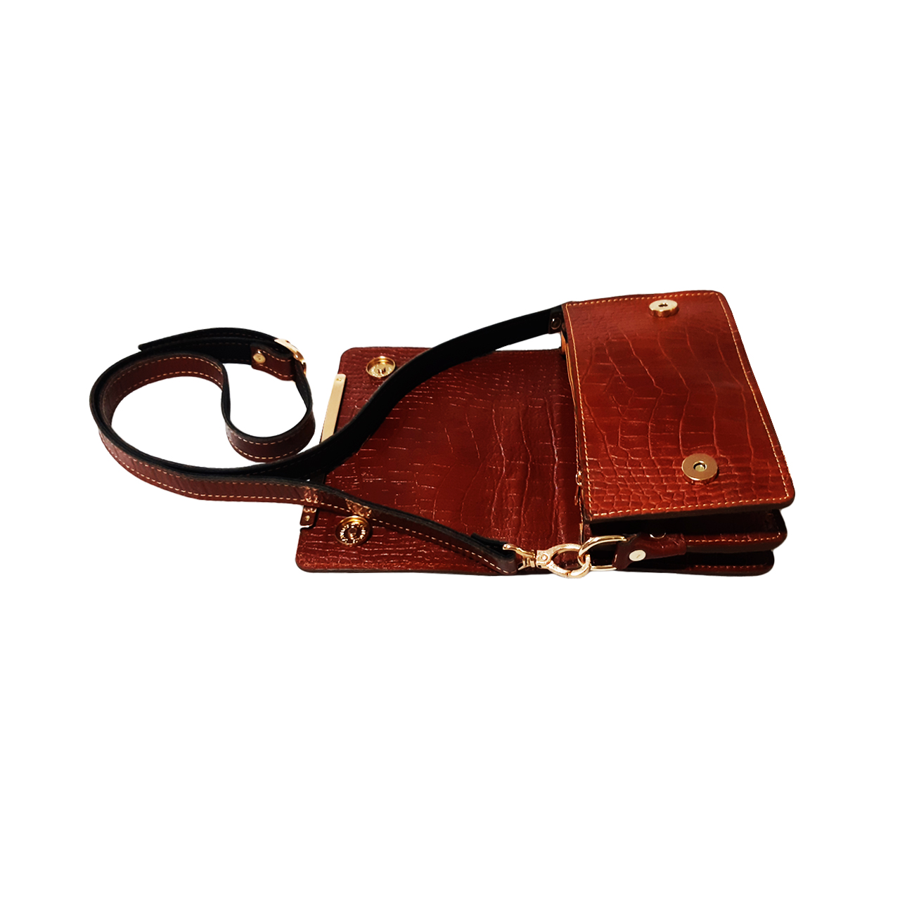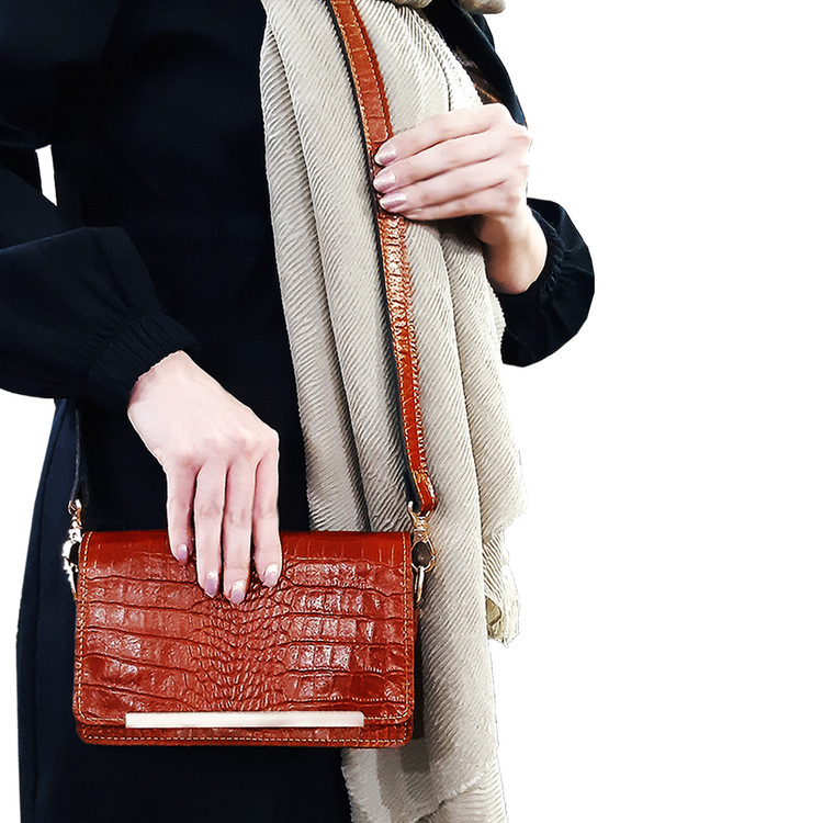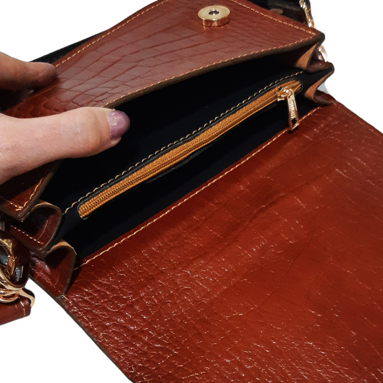 کیف دوشی زنانه تمام چرم طبیعی طرح کروکودیلی مدل لارا کد ۷۴۴