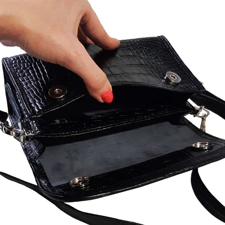 این کیف دارای دو تبل راحت و مناسب برای حمل آسان روی شانه است. قسمت داخلی آن نیز دارای جیبهای مناسب برای قرار دادن وسایل ضروری همچون گوشی تلفن همراه، کارتها و سایر لوازم است.