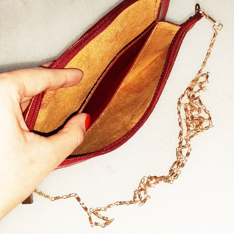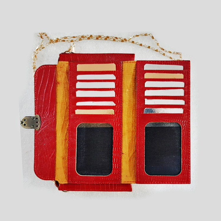 یک محفظه زیپدار داخل چرم مناسب موبایل و پاوربانک و لوارم آرایش و... یک محفظه سگک دار، داری چندین محل مخصوص کارت و مدارک و اسکناس و...