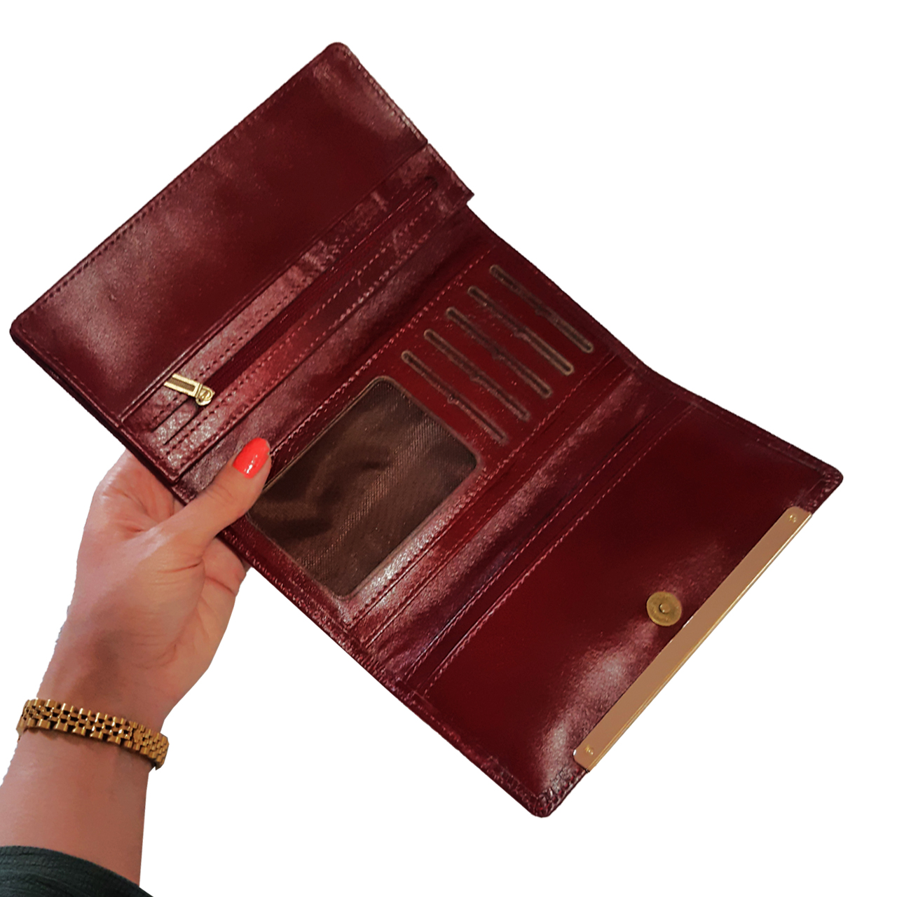یکی از جذابیتهای این کیف پول زنانه، لبههای طلایی آن است. این لبههای طلایی، علاوه بر افزودن به زیبایی محصول، باعث ایجاد حس لوکس و شیک بودن میشود.