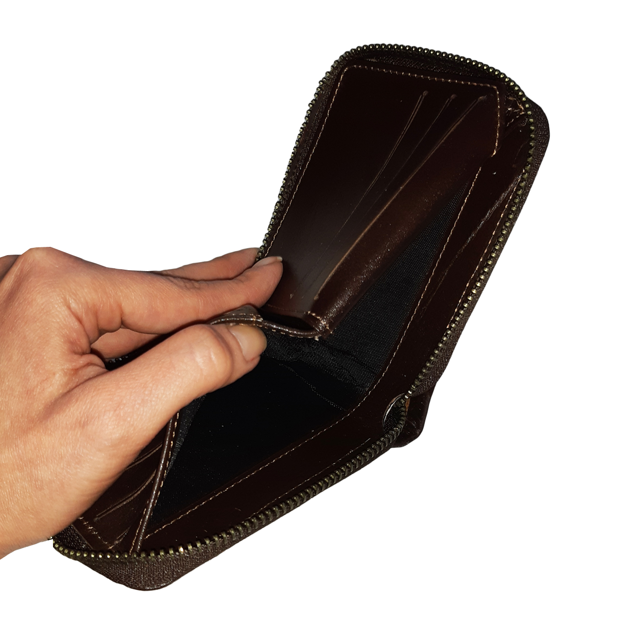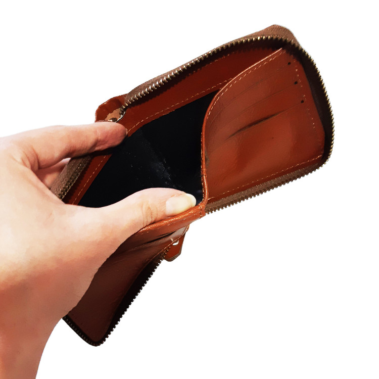 تولید و فروش عمده کیف کیف جیبی دور زیپ تمام چرم گاوی کد ۵۲۵ با جای اسکناس و چندین کارت و مدارک و جاکارتی سیار